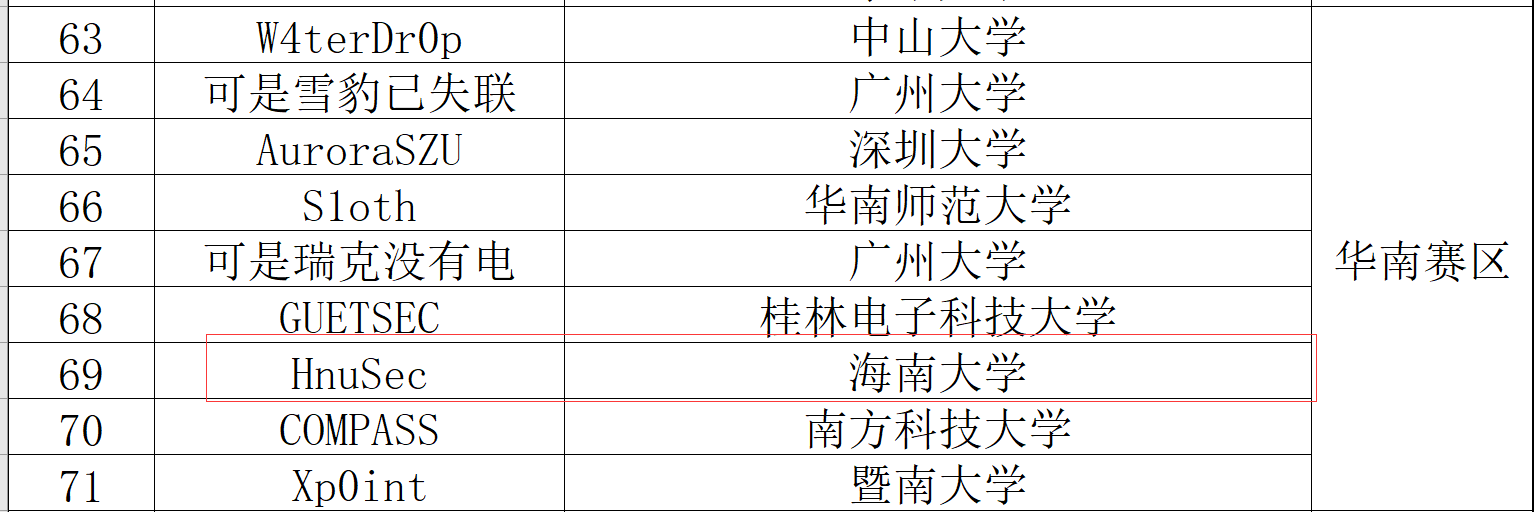 线上初赛时间为5月27-5月28日,经过16小时的激战,华南赛区共计选取了50支战队参加分区总决赛,公司学子顺利晋级分区赛决赛。华南分区半决赛于6月24圆满结束,经过8小时奋战,公司HnuSec战队成功晋级全国总决赛。