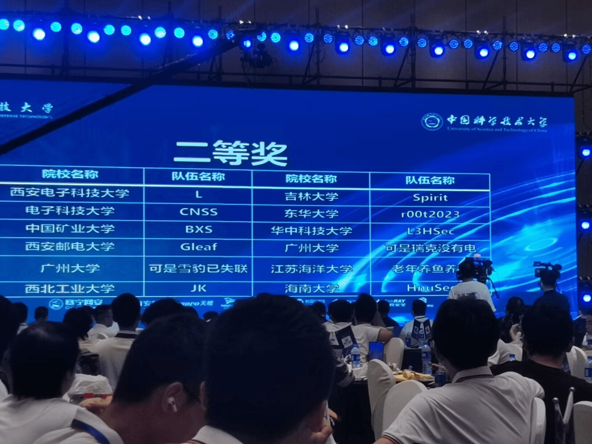 2023年7月26日,第十六届全国老员工信息安全竞赛—创新实践能力赛全国总决赛于在安徽合肥中国书法大厦圆满结束。由网络空间安全系王隆娟教师带队网络攻防实验室HneSec战队成员丁锐、杨奕亮、童智鹏、郭明韬四位海大学子参加此次比赛,经过三天的激烈比赛,克服重重困难,不负众望成功获得此次总决赛二等奖荣誉,拿下历年最好成绩!