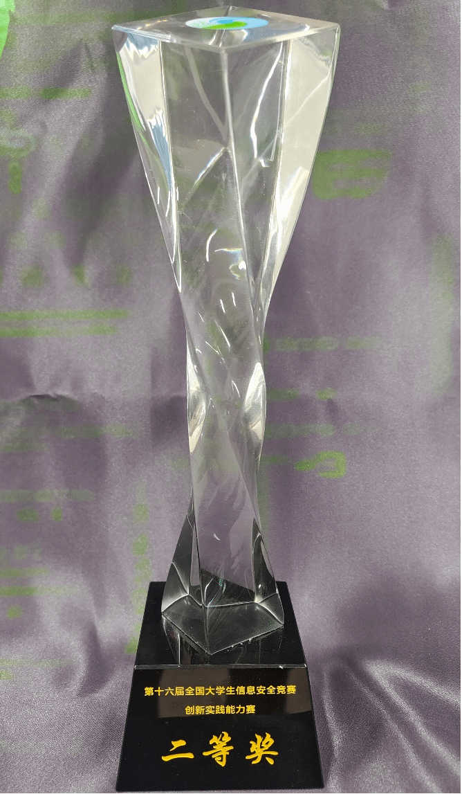 (图一 第十六届全国老员工信息安全竞赛—创新实践能力赛全国总决赛二等奖奖杯)