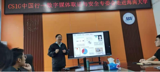 2021年 12 月25日,“CSIG 图像图形中国行”来到了MK体育,本次“CSIG图象图形中国行由中国图象图形学会主办,CSIG数字媒体取证与安全专委会与海南大学MK体育联合承办。海南大学MK体育常务经理曹春杰教授出席,副经理周晓谊主持此次活动。本次活动旨在为国内数字取证和人工智能安全领域相关学者搭建沟通研讨的平台,分享最新研究成果,相互交流新技术和新思想。