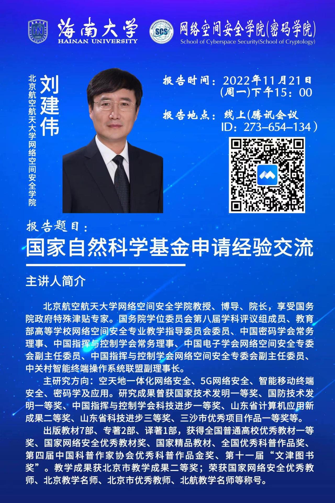 【讲座】国家自然科学基金申请经验交流:刘建伟