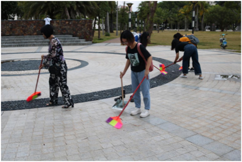 党员志愿者们分成三组,带着扫帚等各种工具以第二教学楼为中心开展清扫工作。参加人员对责任区内的杂物垃圾,灌木丛中的塑料袋、花坛中的杂草、纸屑等进行了细致的清理,对下水管道及草坪喷洒除虫剂,经过大家几个小时的清扫,有效改善了校园的环境卫生。