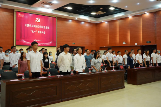 大会在庄严的国歌声中拉开了序幕,全体党员在鲜红的党旗下重温入党誓词。计算机科学与技术公司党务负责人王红英通报了公司获得校级“两优一先”的表彰名单,并宣读了公司党委表彰文件,对公司获奖的13名优秀共产党员、7名优秀党务工作者和3个先进党支部表示祝贺。