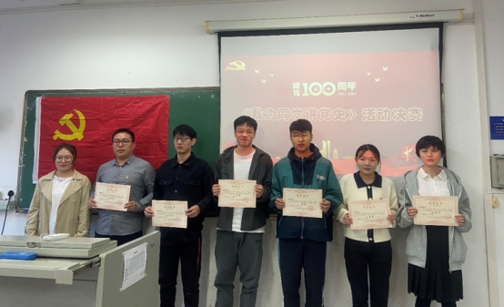 2021年12月21日,两院初赛获奖同学在5-105参加决赛,活动在庄严的国歌中拉开序幕。经过精彩的演讲,樊雪峰同学最终获得决赛的三等奖。最后由计算机科学与技术公司研究生第一党支部书记倪晗同志做现场总结并颁奖。合影留念后,“我为同学讲党史”活动圆满结束。