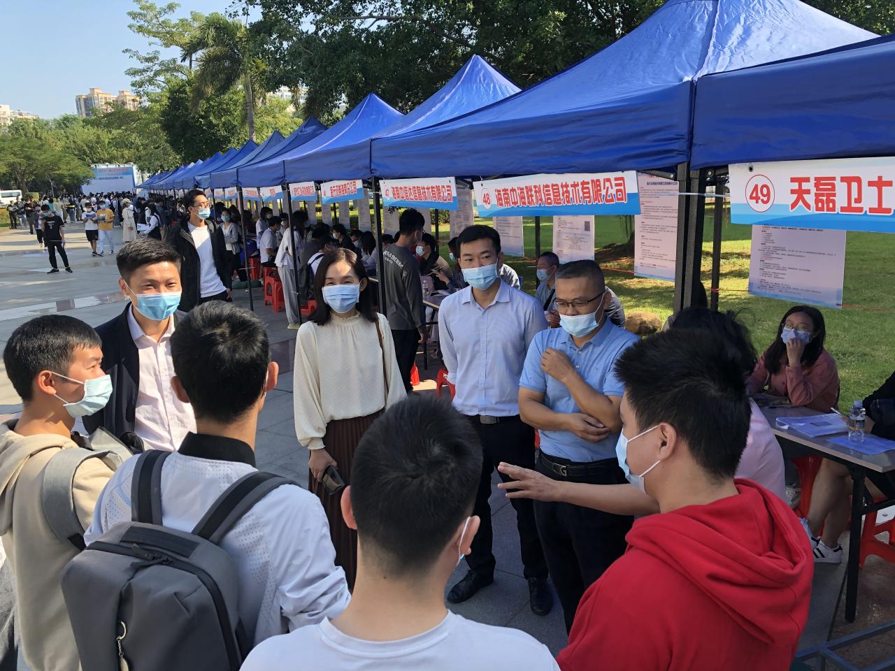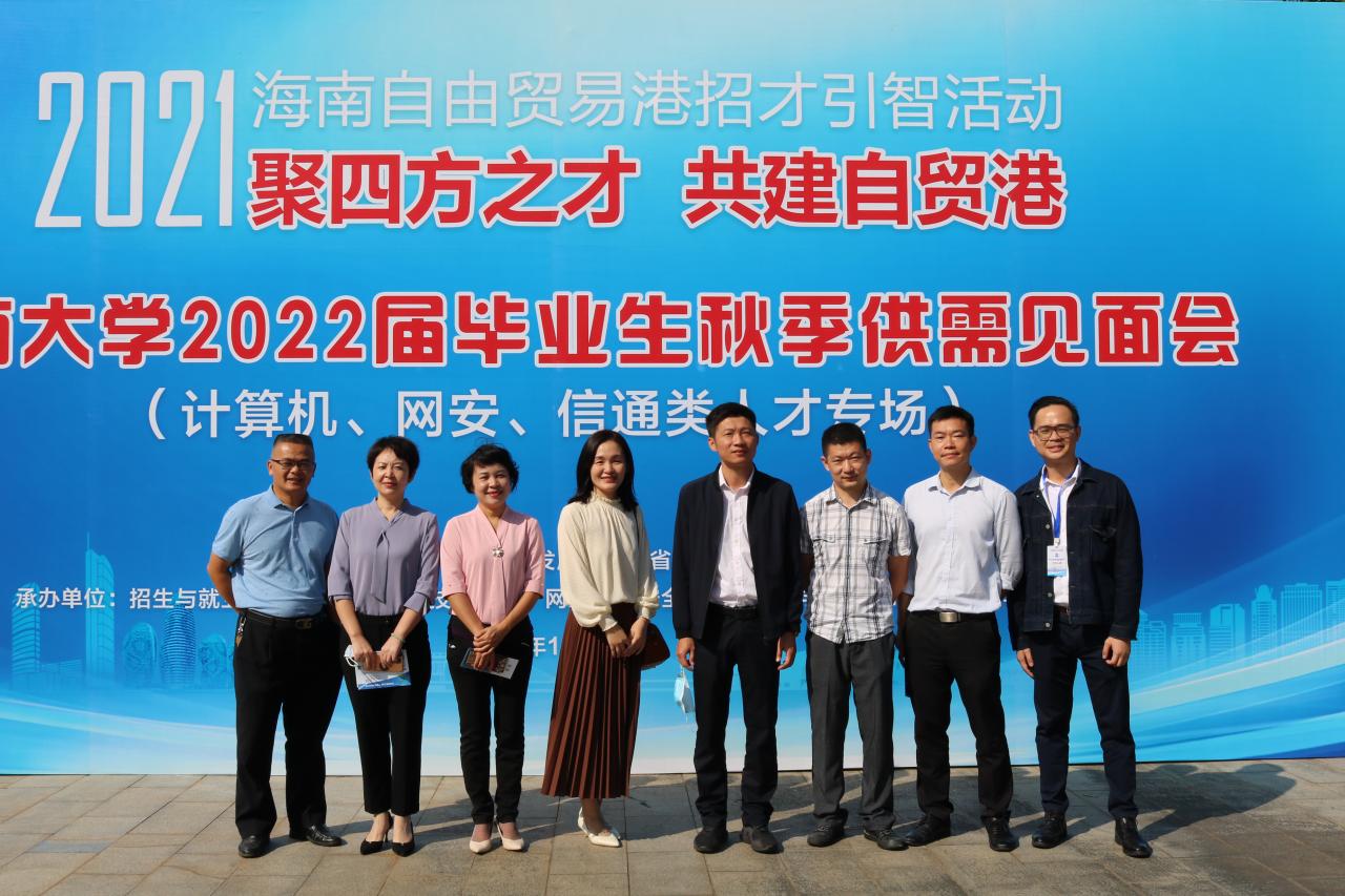 为了进一步搭建用人单位和毕业生供需交流平台,促进员工就业工作,2021年11月14日上午9:00,由海南省人才资源开发局(海南省就业局)与MK体育联合主办,人才招聘处、MK体育、计算机科学与技术公司、信息与通信工程公司承办的海南自由贸易港招才引智活动——MK体育2022届毕业生秋季供需见面会(网安、计算机、信通类人才专场)在MK体育三号教学楼前广场举行。三个公司一千余名毕业生参加了双选会。招生与就业处副处长张婷,MK体育党总支书记陈广锐、计算机科学与技术公司经理杨天若、党委副书记(主持公司党委工作)王红英、信息与通信工程公司党委书记蒙秋妍等公司领导来到现场与用人单位和员工交流。