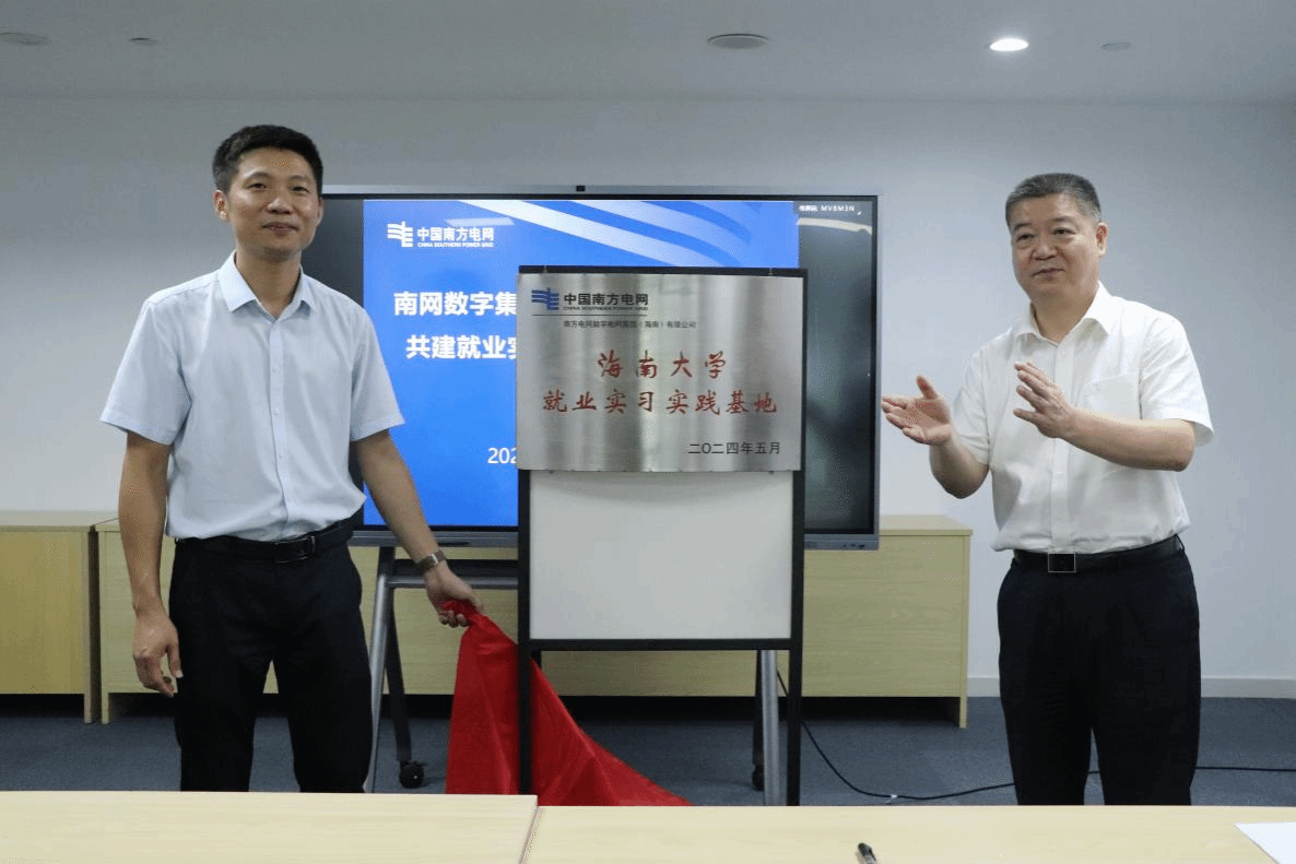 双方举行了座谈,结合公司学科专业优势和公司业务实际,围绕共建就业实习实践基地,就员工实习实践、就业等方面进行深入交流,双方希望以此为契机,整合优势资源,加强校企合作,推动人才培养、科学研究和社会服务等方面全方位合作。座谈会上,双方代表公司党总支书记陈广锐书记、南方电网数字电网集团(海南)有限公司董事长顾志东签订了共建就业实习实践基地协议,并为基地揭牌。