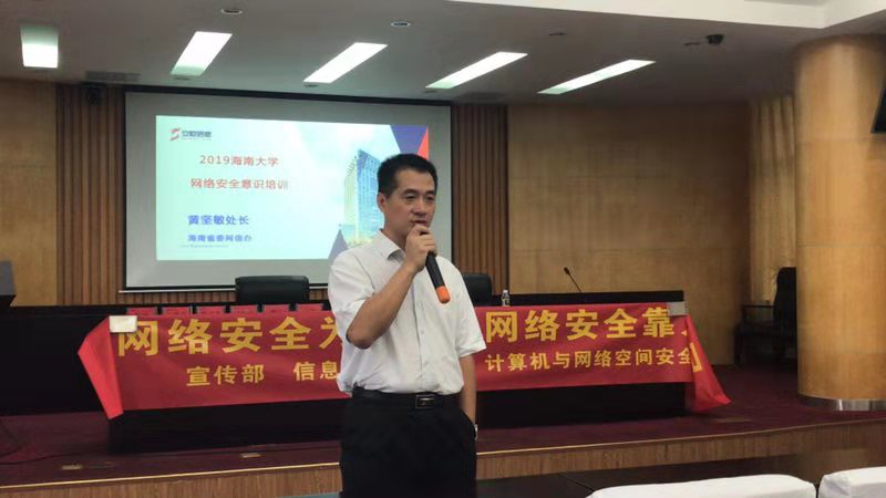 在本次网络空间安全宣讲活动中,我们有幸邀请到了海南省委网信办网络安全处处长黄坚敏、安恒信息技术股份有限公司主任陈宇乾、奇安信渠道技术总监田海燕等专家来MK体育进行网络空间安全的知识讲座。