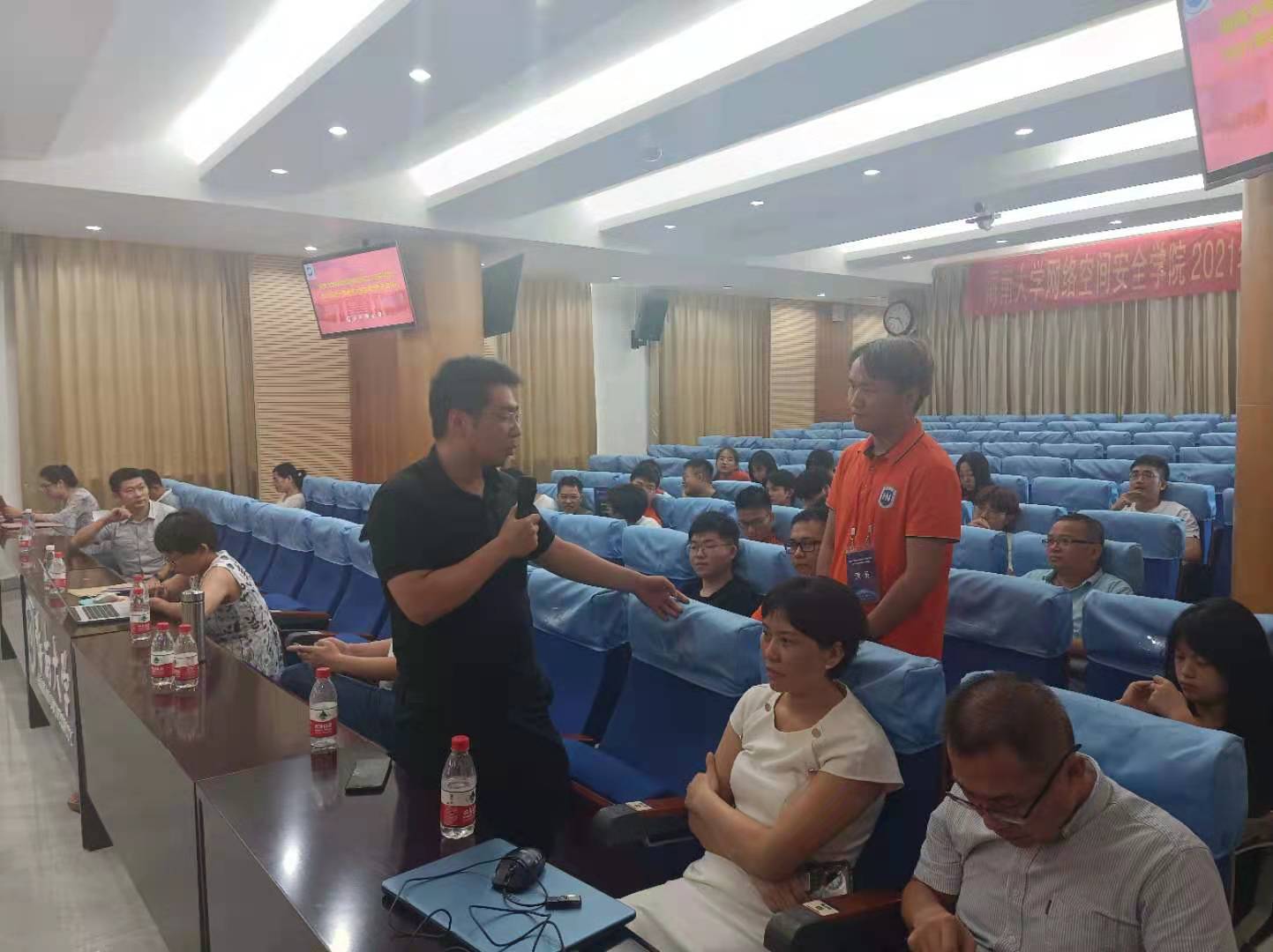 交流座谈会上,网络空间安全系副教授张殿围绕什么是网络空间安全、为什么需要保障网络空间安全两个主题,从不同层面分析了网络空间安全的重要性,并解读了习近平总书记在庆祝海南建省办经济特区30周年大会上的讲话“没有网络安全就没有国家安全”,阐述网络安全对于国家的重要性。