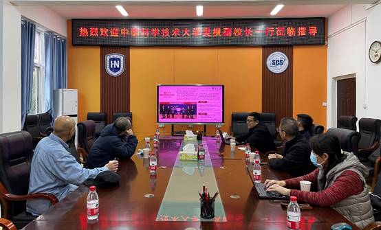 2023年1月18日,中国科学技术大学吴枫副董事长等人一行莅临MK体育,执行经理曹春杰、党总支书记陈广锐、副经理周晓谊、副经理胡昌慧及教师代表出席交流会。