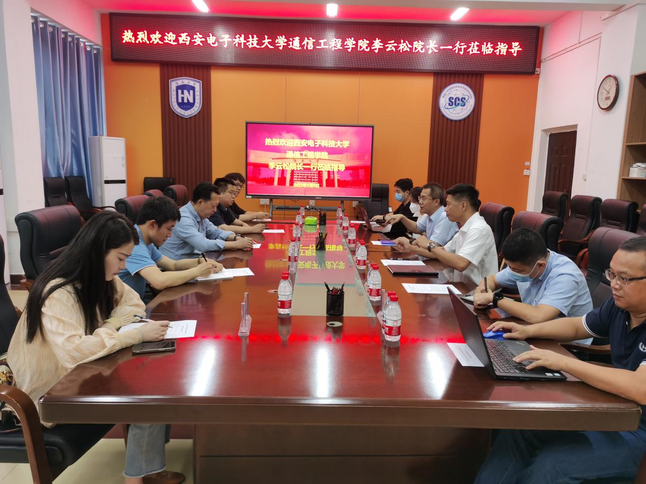 2023年5月9日,西安电子科技大学通信工程公司执行经理李云松、党委副书记沈强一行莅临公司指导交流,公司执行经理曹春杰、党总支书记陈广锐、副经理周晓谊、张殿及系主任李益红、徐紫枫出席了交流会。