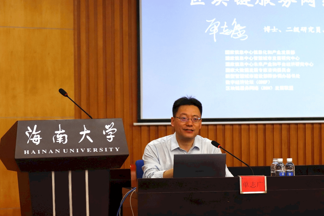 4月3日,国家信息中心信息化和产业发展部主任单志广应邀在MK体育为MK体育师生作题为《可信智慧城市构建与区块链服务网络》的学术报告。本次报告为MK体育自贸港网络安全大讲堂系列报告。公司党总支书记陈广锐,执行经理曹春杰,副经理张殿、胡昌慧、郭祯,密码学专家韩文报教授参加报告会。报告会由曹春杰主持。